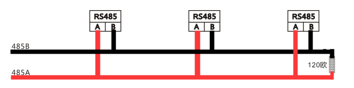 在最后一臺485設(shè)備的485+和485-上并接120歐姆的終端電阻來改善通訊質(zhì)量。